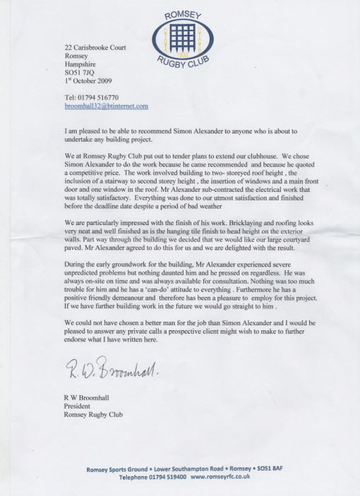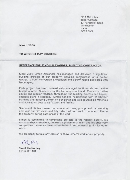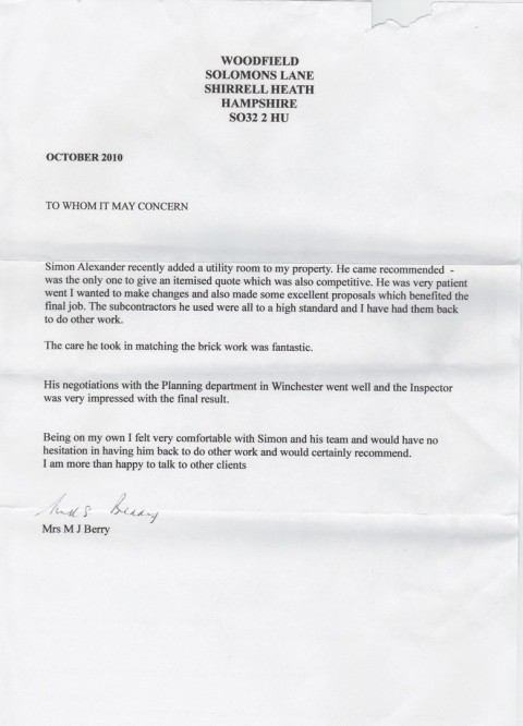 Just a short note to express our gratitude for the building work you did for us. The orangery looks really good and is a lovely addition to the house. We were extremely grateful for your willingness to take on the work, having seen the mess left by the previous builder. The quote you provided was extremely comprehensive, detailing every stage of the process, including removing the previous partly finished work, and we really appreciated your honesty with the merits of different approaches and your flexibility to amend the design as the work progressed. All aspects of the work were completed to a high standard, in the anticipated timescale and to the quoted cost. I have had no reservations in recommending you to friends who are considering having building work done, and will continue to do so.